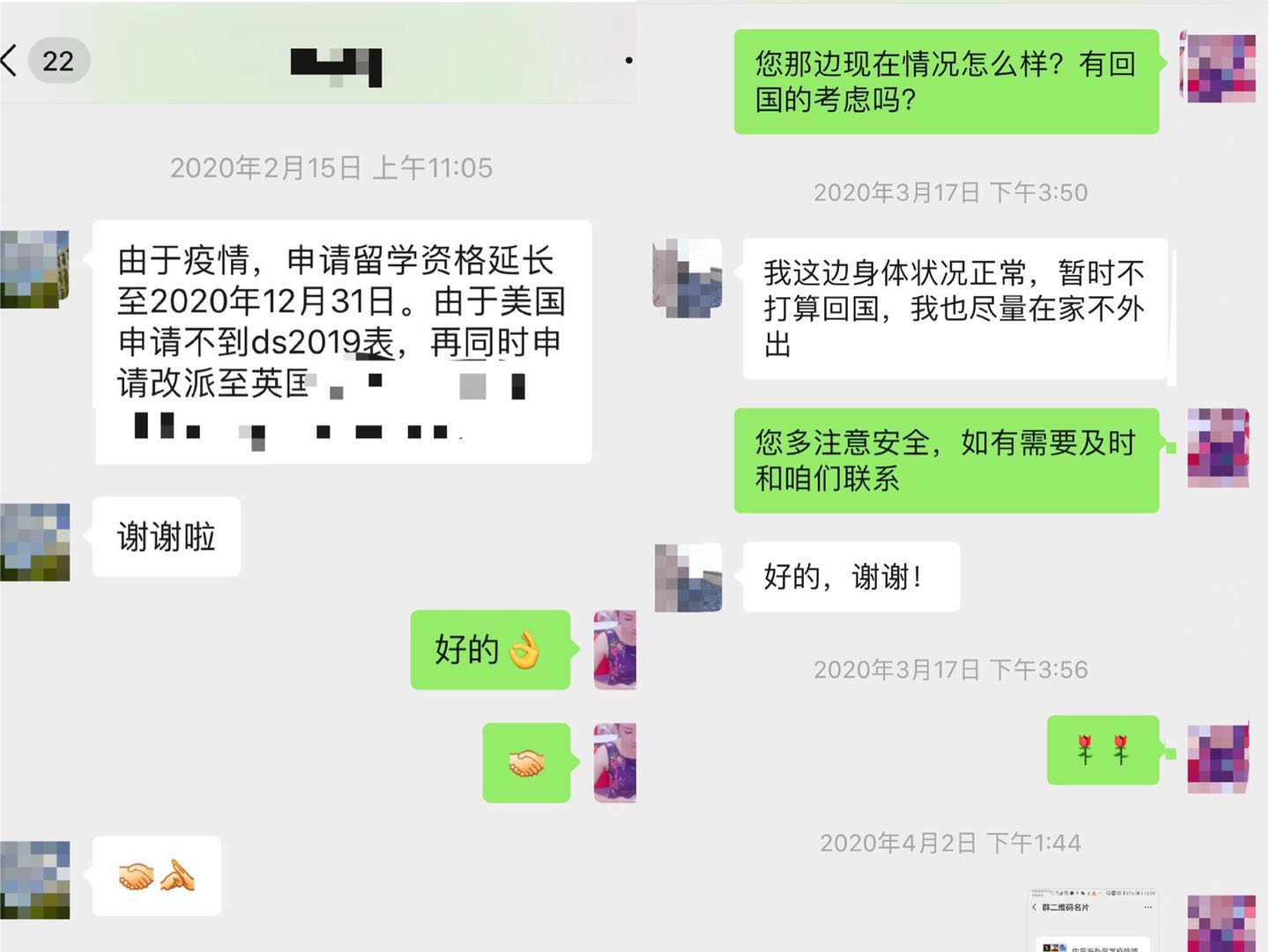 同时,国际教育学院积极与中教国际教育交流中心等相关部门、留学学校沟通联系,确定工作联防机制。通过微信、电话、邮件、QQ等多种渠道与海外师生保持联系,精准掌握学校境外师生在国外工作学习情况,将每一位师生纳入疫情防控网状管理协助指导在外师生安全返程随时关注师生的健康状况及变化。为保障广大师生的生命安全,调整并推迟学校出国(境)团组,延期(提前)海外访学回国团组4个;通过开展人文关怀和心理安抚、物资保障等各项措施为我校境外师生正常学习和生活提供了坚实后援。