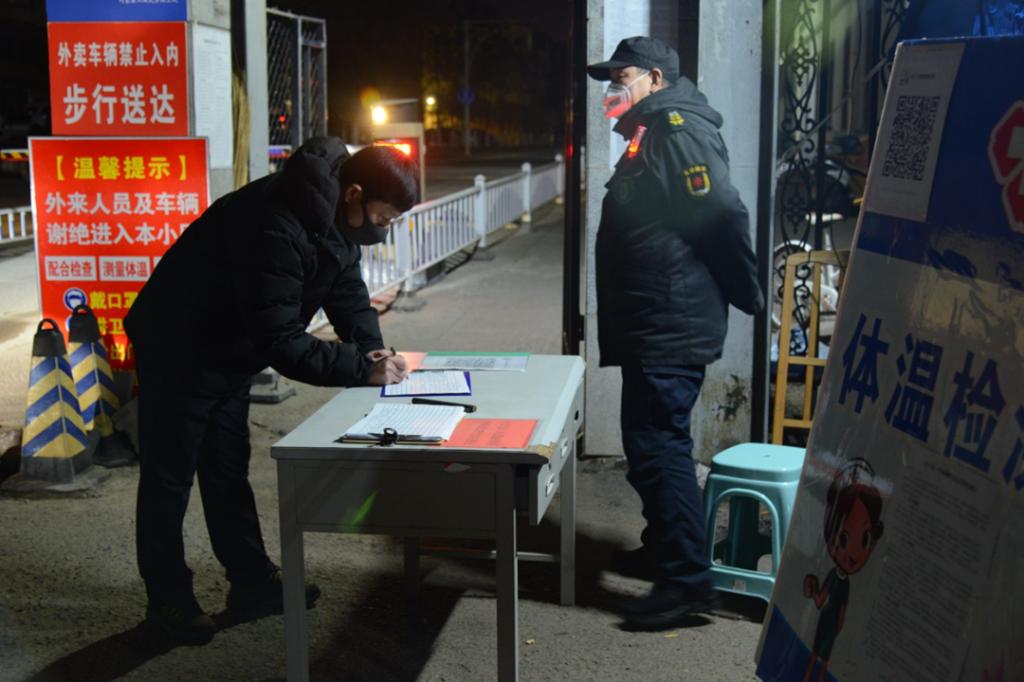 严防疫情输入校园,把好校门“入口关”是重中之重。两校区18名主值班员放弃春节假期,吃住在学校,不畏风险,投入到“防疫”一线工作中。在校门口体温检测处,值班员随时注意来往车辆和人流,发现有进校车辆,引导车辆停下,检查车内情况;发现有进校人员,及时提示大家在校门前有序等待出示有效证件以方便身份核验。值班员对所有进入校园的人员逐一进行身份核验、体温检测、实名登记并确保入校人员佩戴口罩后予以进入校园,凡未按要求佩戴者一律禁止同行,同时协同工大社区办事人员,对进入家属区的人员进行体温监测、核验登记。除此之外,坚持24小时校园巡逻、接警处警,保证所有人员在校园公共场合佩戴口罩,杜绝人群聚集,随时做好应急处突准备,尽力提供安保服务。为保证校门执勤人力充足,值班员们和其他保卫人员的进餐、间休轮流完成。
