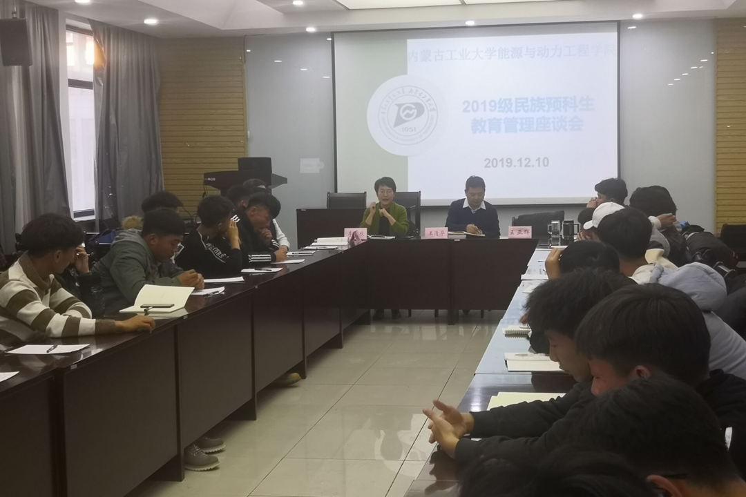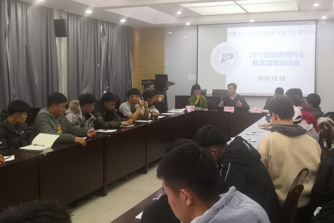 为加强少数民族预科班学风建设了解学生的思想动态及日常情况12月10日下午,能源与动力与工程学院新城校区工程技术楼512会议室召开“2019级民族预科生教育管理”座谈会。院领导孟克其劳、李欣欣、王清华热能与动力工程系主任王亚辉2019级民族预科班班主任贾相如全体学生参加本次座谈会。
