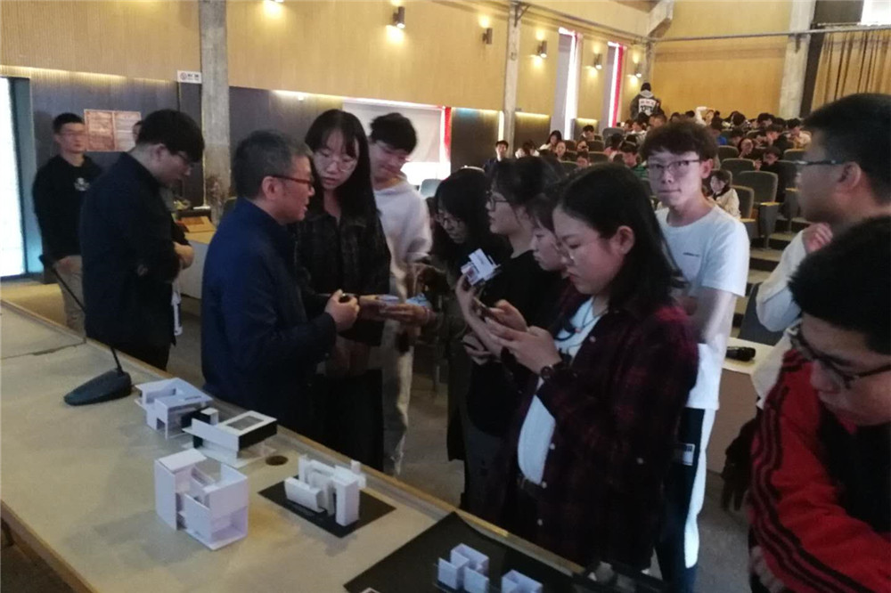 建筑馆李大报告厅顾大庆为学院师生作题为建构、空间与设计的学术讲座自己三十余载的基础教学研究为背景,详细介绍了在香港中文大学执教25年的教学成果针对主持的“建构工作坊”的相关教学内容,与参会师生进行了交流