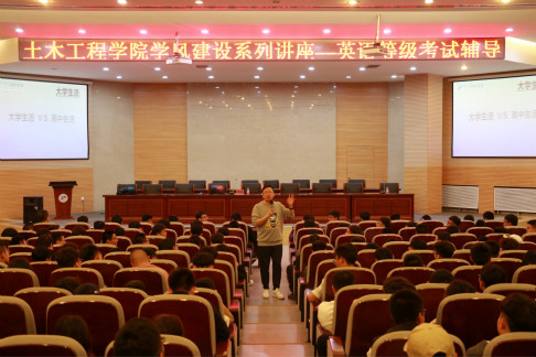 4月22日,土木工程学院在新城校区第三教学楼报告厅举办学风建设系列讲座之英语等级考试辅导讲座。学院党委副书记、副院长陈辉和2018级全体学生参加讲座。