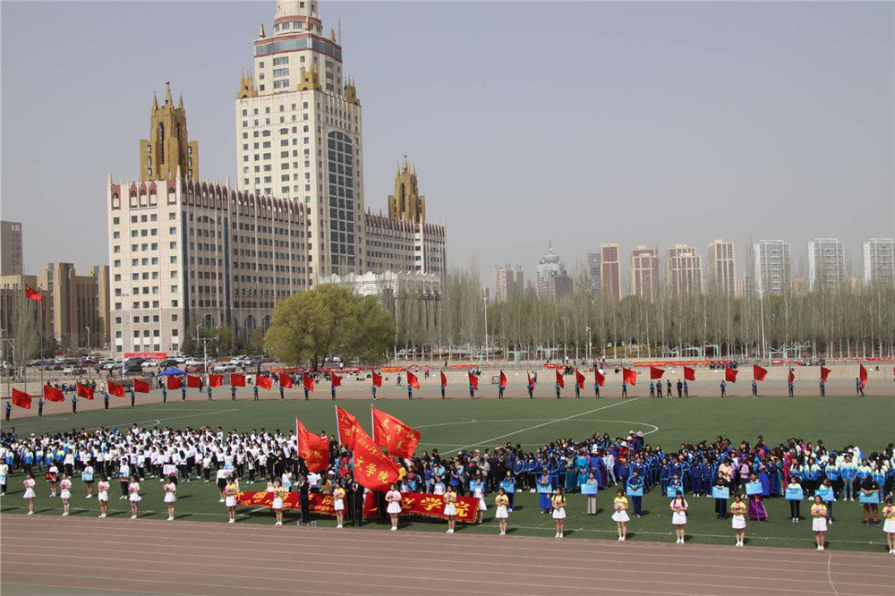 4月21日下午,外国语学院与人文学院在金川校区体育场联合举办2019年田径运动会外国语学院人文学院党政领导两学院全体师生参加运动会。