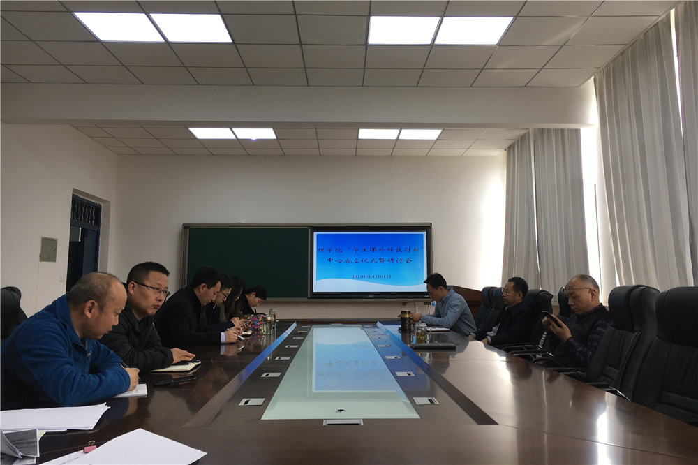 为培养学生的创新意识、创新思维和创新能力,以学生科技创新为载体推动学院学风建设4月1日下午理学院学生课外科技创新中心成立仪式工作研讨会在新城校区实验楼516会议室举行。学院党政领导团委、教学科研服务中心、实验中心相关负责人,各系主任及学生课外科技创新中心指导教师参加仪式并进行工作研讨