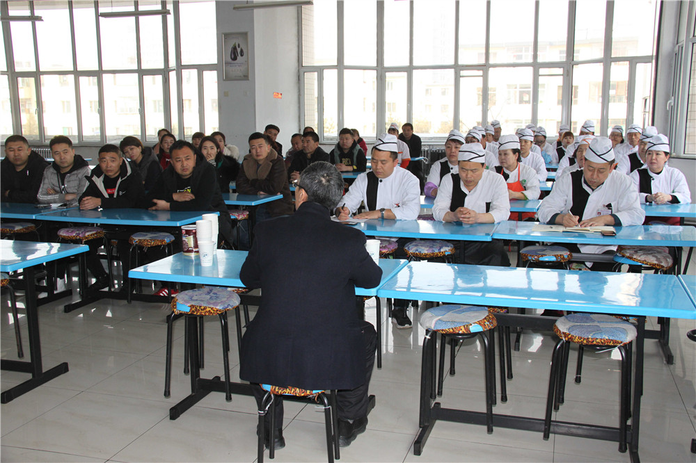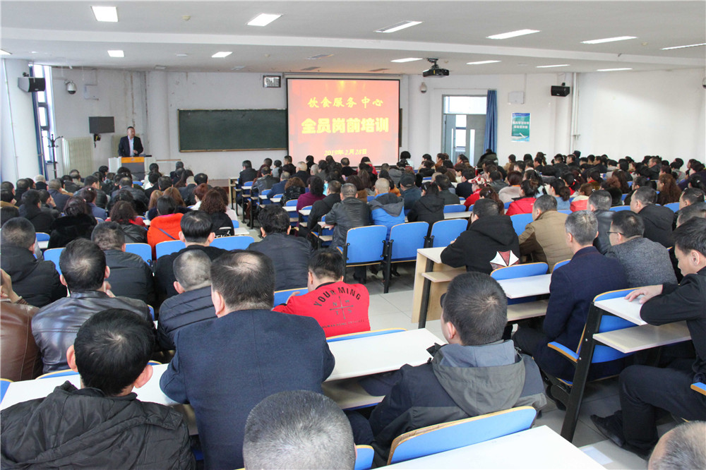 2月28日,后勤管理处饮食服务中心举行全员岗前培训,中心负责人、各级管理人员、全体员工近400人参加培训。