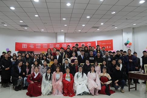 12月27日晚图书馆在金川校区教学楼E举办迎新年师生联谊会。图书馆副馆长刘英图书馆教师代表及学生图管会、勤工助学站起点文学社的130余名学生参加联谊