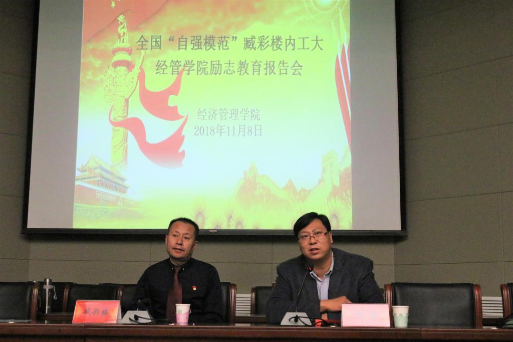 11月8日,我校经济管理学院邀请“第五届全国残疾人自强模范”“全国志愿助残阳光使者”臧彩楼,在新城校区图书馆报告厅作“砥砺前行,决不放弃”主题励志教育报告。经济管理学院党委副书记、副院长冀强主持报告会师生代表150余人聆听报告。