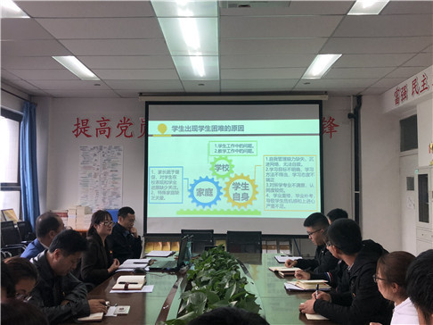 学院学生工作支部组织委员冯静介绍学业预警的分类等级,分析了学院2015级2017级各专业学生学业预警情况。各学生党支部书记支部内被预警学生情况进行分析讨论。