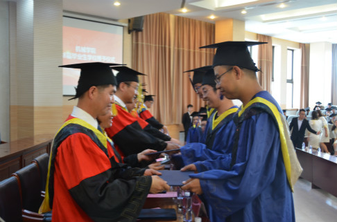 7月5日下午,机械学院在新城校区第三教学楼二楼报告厅举行2018届毕业生学位授予仪式。学院领导班子成员、各教学单位负责人、毕业生班主任和2018届全体毕业生参加仪式。副院长冯小虎主持仪式。