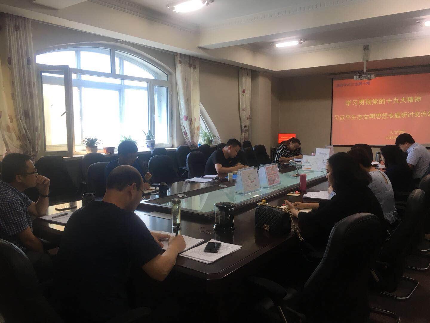 6月8日,人文学院在金川校区电力大楼三楼会议室举办第十期漠南学术沙龙专题研讨习近平生态文明思想。会议由学院副书记、副院长毛长明主持,学院领导班子成员、科级干部各党支部书记参加研讨。