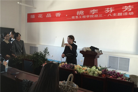 为迎接第108个“三·八”国际劳动妇女节,3月8日下午,信息工程学院举办“桃李芬芳”插花艺术沙龙。