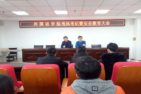 为进一步严肃考风考纪,增强学生诚信意识和安全意识,1212日,外国语学院在电力大楼400会议室召开考风考纪暨安全教育大会。学院党委副书记、副院长张兴涛,学院团委、学生会主要学生干部、各班级班长、团支部书记80余人参加会议。学院学生工作办公室主任代维东主持会议。