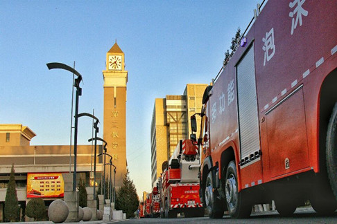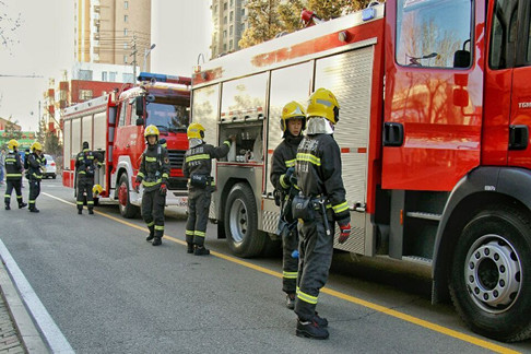 1128日下午,新城区消防特勤一中队深入我校武装保卫处联合进行消防实战演练。我校师生现场观摩。