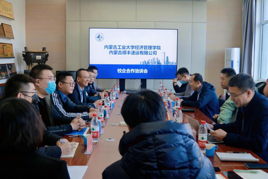 3月3日,经济管理学院在主楼317会议室召开校企合作洽谈会。内蒙古顺丰速运有限公司营运部负责人张兴,客户开发负责人赵振宇,员工关系负责人刘磊,新城片区负责人王凯民以及我校国有资产管理处处长楚鲁,经济管理学院党委书记祁龙,党委副书记、副院长徐德生,副院长吉格迪,管理工程系负责人,实验中心负责人,团学办公室教师等参加会议。