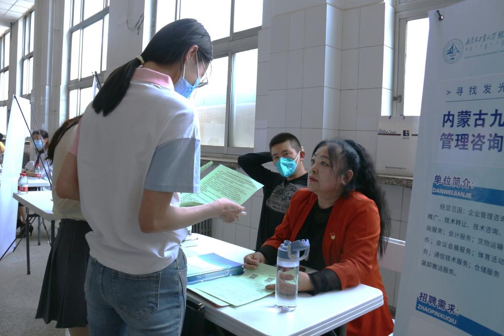 5月18日,经济管理学院举办2023届毕业生招聘会。邀请国任财产保险股份有限公司内蒙古分公司、内蒙古蒙清农业科技开发有限责任公司等涉及金融、房地产、教育等领域的3家国企、2家三资企业、39家民营企业到校招聘。提供就业岗位171个,岗位总需求人数1683人。吸引300余名毕业生参与,参会企业合计收到506份简历。