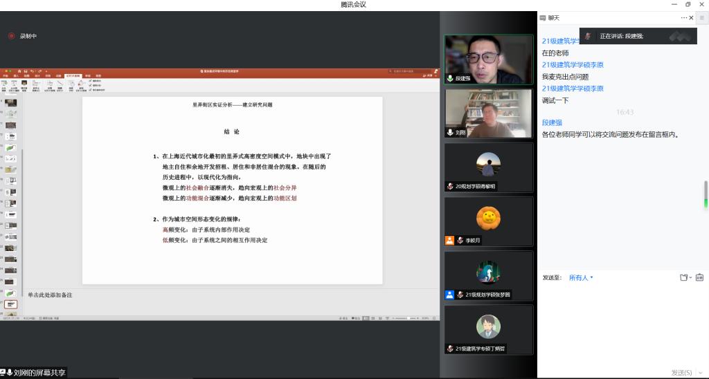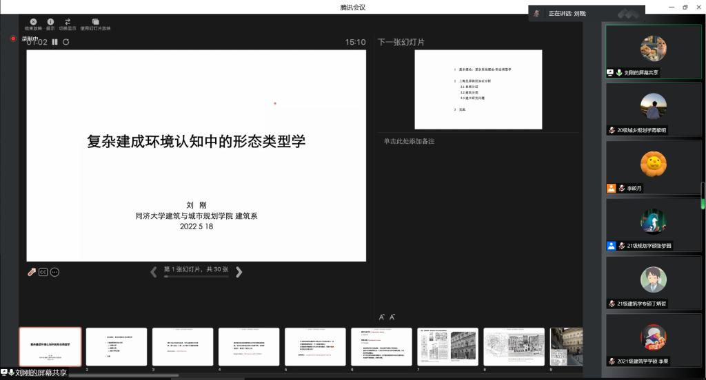 5月18日,建筑学院举办人居环境科学导论与城乡规划学科前沿系列线上学术讲座。邀请同济大学建筑系副教授、博士生导师刘刚讲授“复杂建成环境认知中的形态类型学。我校建筑学院院长贾晓浒主持讲座,建筑学院200余名师生线上参加。