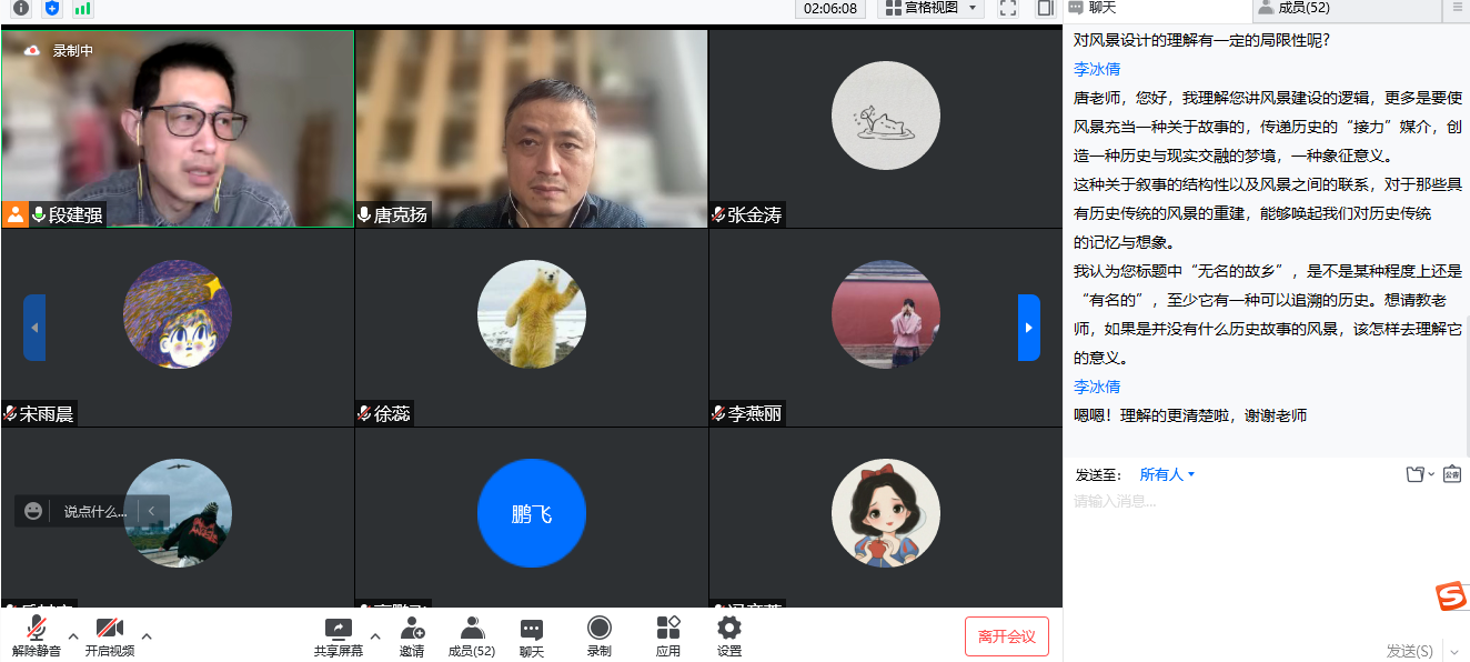 4月20日下午,建筑学院举办风景园林学科前沿系列学术讲座。邀请清华大学未来实验室首席研究员、教授、博士生导师唐克扬线上讲授“活的中国园林——历史中的园林和设计师的梦境”。我校建筑学院段建强教授主持讲座。