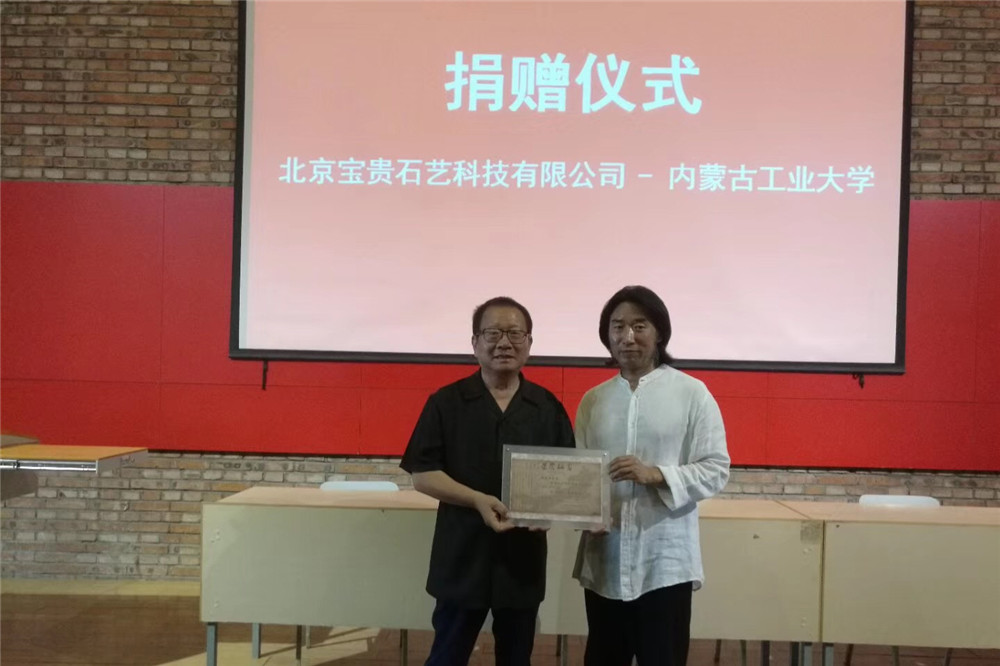 活动中,张宝贵向我校捐赠系列石艺作品及画册张鹏举教授张宝贵颁发捐赠证书贾晓浒与张宝贵签订实习基地协议书。