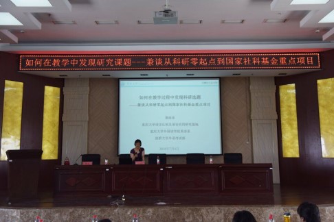 7月6日下午,外国语学院在金川校区电力大楼十楼报告厅举办学术讲座,邀请重庆大学外国语学院教授、博士生导师辜向东作题为“如何在教学中发现研究课题——兼谈从科研零起点到国家社科基金重点项目”的讲座。外国语学院副院长栗霞主持讲座,我校师生与来自区内10余所高校的教师聆听讲座。