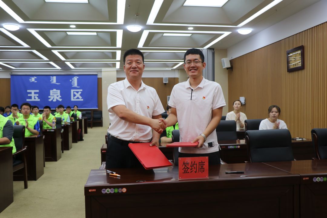 启动仪式上,院志愿者韩博同学代表全体志愿者发言,并做出光荣承诺:一定珍惜机会,以社区为家,尽己所能、不计报酬、服务社会、关爱他人,用爱心传承文明、用真情奉献社会、用实际行动践行“请党放心 强国有我”的庄严承诺,为文明社区、美丽青城的建设贡献青春力量!随后,数据科学与应用学院与玉泉区新时代文明实践服务中心签订了结对共建协议书,双方将一起探索志愿服务新模式,支持和拓展学生社会实践项目,引领广大青年学子积极投身到社会实践中,在社会实践中受教育、长才干、作贡献,以崭新的面貌和实际行动为建党100周年献礼。