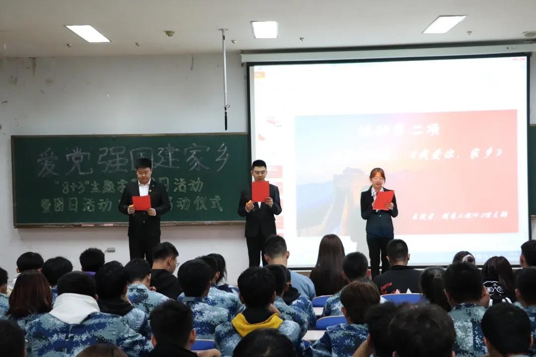 为进一步弘扬爱国精神、坚定理想信念,引导青年人才敢担当、勇作为、做表率,激发青年对党对祖国的热爱,对家乡建设的关心与支持,近日化工学院团委在新城校区第四教学楼报一举办以“爱党强国建家乡”为主题的“8+3”主题示范团日活动暨2020年秋季学期团日活动观摩月开幕仪式。全院各团支部团支书、组织委员、宣传委员、文艺委员等200余人参加。