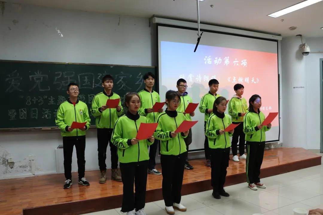 示范团日活动在庄严的团歌声中拉开帷幕。本次示范活动围绕“爱党强国建家乡”主题,通过集体观看学院团委制作的专题视频《工大青年的爱国与担当》,大力弘扬爱国主义精神,引导学生爱党爱国爱家乡,共同为决胜全面建成小康社会贡献自己的青春力量。诗朗诵《我爱你,家乡》、大合唱《我的祖国》、爱党强国建家乡情景剧等学生自编自导自演的节目,让同学们感受到了大家对祖国大好河山的赞美以及当代大学生勇担时代责任、不辱青春使命的信念。