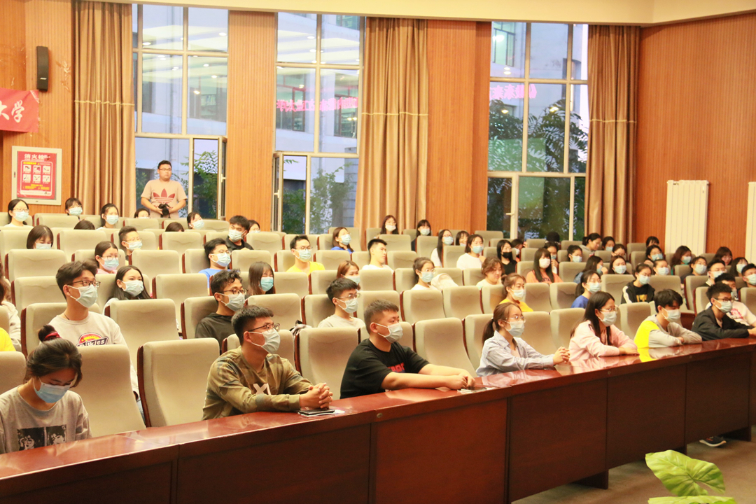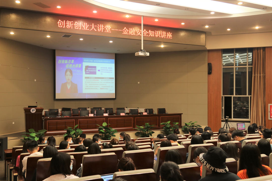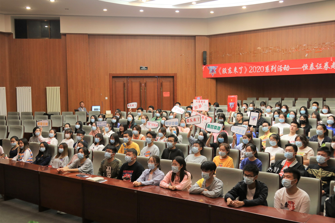 9月9日,经济管理学院新城校区图书馆报告厅举办金融安全知识讲座恒泰证券投教中心主管杨新童投教专员金灿、张颖星、刘宏宇,各年级学生200余参加讲座。学院团学办公室副主任贾国辉主持。