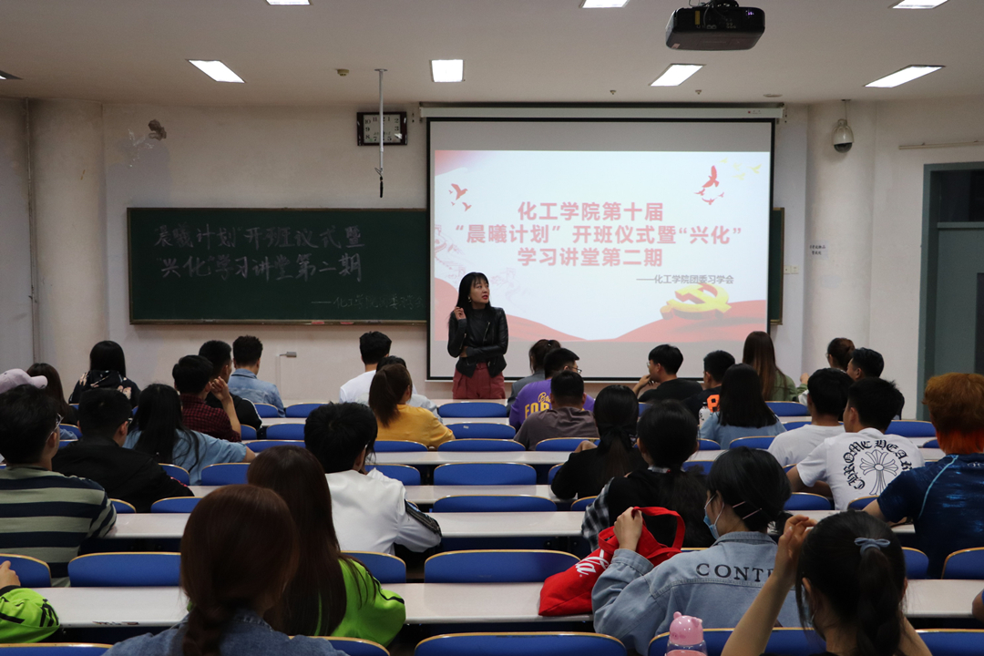 为积极响应青年马克思主义者培养工程的号召,培养优秀学生骨干,提高学生干部工作能力、综合素质,增强学生干部队伍的凝聚力和战斗力9月8日晚,化工学院新城校区第四教学楼报告厅举行第十期晨曦计划”学生骨干培训班开班仪式暨兴化学习讲堂第二期理论学习
