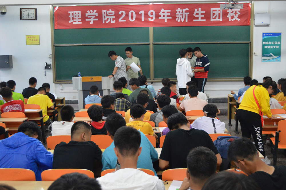 为深入学习贯彻习近平新时代中国特色社会主义思想和党的十九大精神,深化社会主义核心价值观教育,引导新生树立正确的世界观、人生观、价值观,培养良好的学风,9月21日至22日,理学院在新城校区图书馆报告厅举办“开学第一课”主题系列团课,全体2019级新生参加培训。