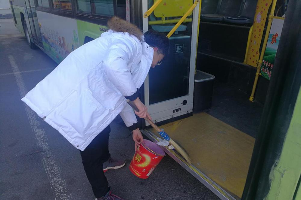 冬日的寒冷丝毫不能阻挡志愿者们的热情一些长期未经打扫公交车内积满了灰尘污垢,志愿者们不怕脏不怕利用各种工具认真仔细地擦洗公交车内的每个角落没有一丝懈怠。志愿者们用了四个小时,紧锣密鼓地将公交五公司内停放的所有公交车都彻底清扫了一遍,为青城市民打造出干净整洁的车厢环境。