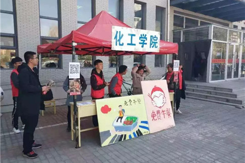 为帮助偏远地区贫困儿童,培养学生志愿服务意识,促进青年大学生关注公益事业中国社会福利基金会授权我校化工学院蒲公英志愿者协会成立的“免费午餐大学生驿站”11月3日至25日期间,在呼和浩特城区共开展5“免费午餐·小善大爱”劝募活动,蒲公英志愿者协会面向全校招募的300余名志愿者参与本次活动。