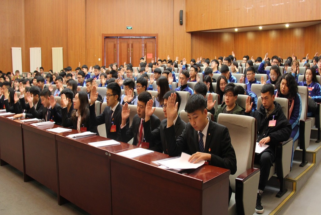 会前召开预备会议,代表们听取内蒙古工业大学理学院第五次团、学代表大会筹备情况报告和代表资格审查报告,表决通过大会主席团、秘书长、大会代表资格审查委员会委员等名单。随后的主席团会议通过了大会议程,拟定大会总监票人、监票人、计票人名单。