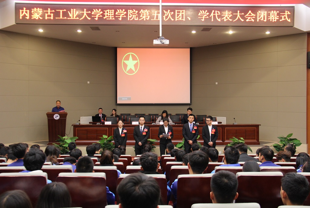 大会闭幕式由理学院团学工作办公室副主任陈玉宝主持。全体代表一致通过总监票人、监票人、计票人名单和《内蒙古工业大学理学院第五次团、学代表大会选举办法》选举工作有序进行,产生理学院第五届团、学委员会委员。