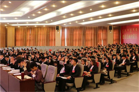 化工学院大会在庄严的国歌声中拉开帷幕。王凯开幕辞中强调,学院共青团组织是在党领导下按照自己章程组织起来的青年学生自己的组织,是培养德智体美全面发展的社会主义事业建设者和接班人的重要力量,希望学院团委、学生会委员能够以实际行动成为同学们的模范代表,在学习生活中为同学们做出表率。矿业学院团总支书记尚进代表兄弟学院致贺词。