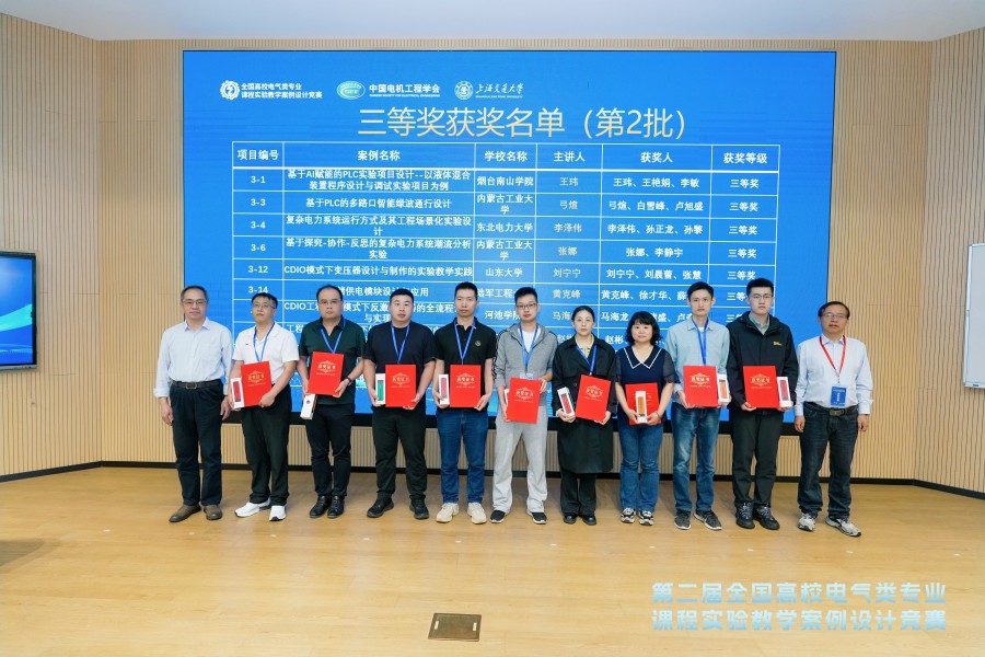 全国高校电气类专业课程实验教学案例设计竞赛由教育部高等学校电气类专业教学指导委员会、中国电机工程学会和国家级实验教学示范中心联席会电子学科组联合主办,上海交通大学承办旨在进一步推动专业课程实验教学内容研究探索、工程实践、自主创新改革,加强各高校实验教学优秀教学资源共享,促进实验教学水平与教学质量提升。学校高度重视备赛工作,积极组织12名教师组成4支队伍参赛,与清华大学、同济大学、上海交通大学、华北电力大学等多所高校同台竞技,最终斩获佳绩。