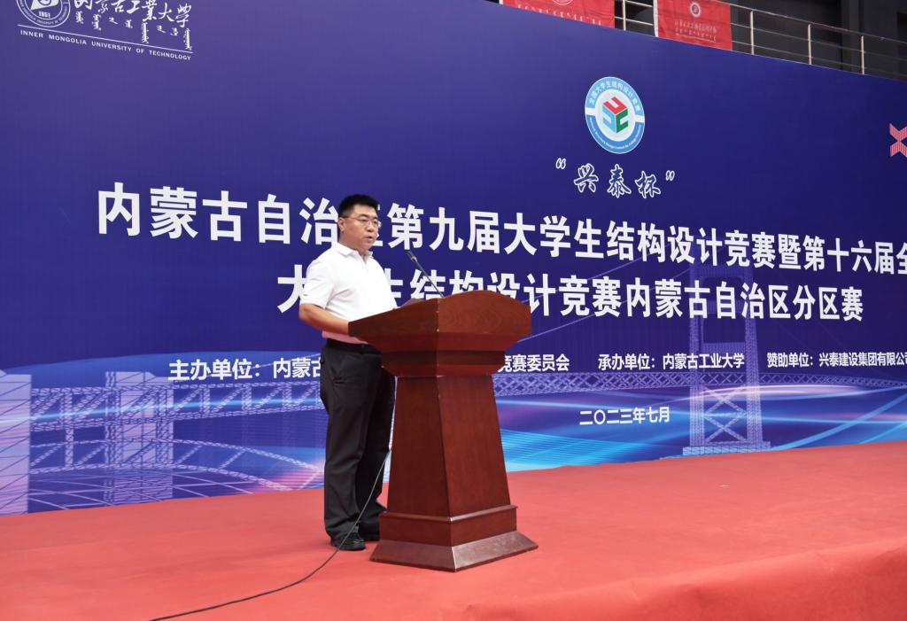 7月7日,由内蒙古自治区大学生结构设计竞赛委员会主办、我校承办的“兴泰杯”内蒙古自治区第九届大学生结构设计竞赛暨第十六届全国大学生结构设计竞赛内蒙古自治区分区赛在我校新城校区卓越体育馆开幕。副校长、土木工程学院院长郝贠洪,内蒙古科技大学土木工程学院党委书记张利敏,内蒙古建筑职业学院建筑工程与测绘学院副院长牛恒茂,自治区大学生结构设计竞赛委员会秘书处秘书长冯斌,兴泰建设集团有限公司党委副书记、行政总监王向延以及相关职能部门负责人、区内高校70余名参赛师生参加开幕式。土木工程学院党委书记张翔主持开幕式。