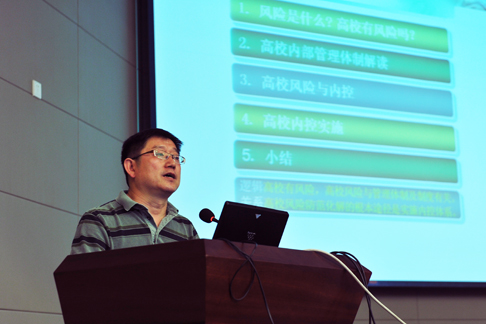 在新城校区图书馆二楼报告厅,校党委宣传部联合审计处,纪委、监察处共同举办“高校风险与管控”专题讲座。校党委副书记、纪委书记刘志雄出席,部分校属单位负责人,各学院分管财务负责人,纪委、监察处,宣传部、审计处、财务处、国资处等部门全体人员,后勤管理处科室(中心)负责人,管理学院财会系教师等参加专题辅导。内蒙古审计厅内审师协会副会长、内蒙古水务投资集团公司副董事长、内蒙古蒙水水资源股份公司董事长、企业内控专家王中华,从风险的涵义、高校风险的类别、高校风险与高校内部管理体制的关系、如何防范和化解高校风险等几个方面对“高校风险与管控”这一主题进行了深入分析,并结合长期从事企业内控实践经验阐述了个人研究学习的心得体会。王中华认为,高校有风险,高校风险涉及战略风险、市场风险、财务风险、政策法规风险、管理风险、政治风险等诸多方面,高校风险和管理体制及制度关系密切,防范和化解高校风险的根本途径是配套实施内控体系。讲座内容丰富,数据翔实,针对性强。