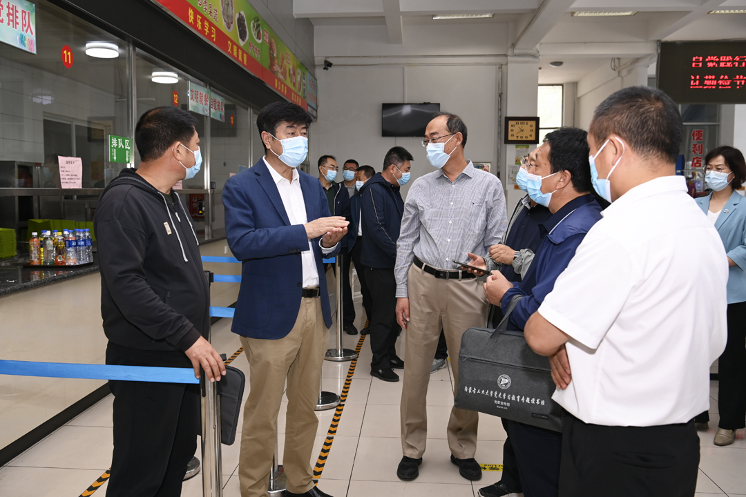 校领导分别到两校区校门、餐厅、学生公寓、图书馆以及防疫物资储备库、校内集中快递点、临时隔离区等检查指导工作,查看各处疫情防控措施落实和开学初各项工作开展情况,现场听取相关单位负责人的工作汇报并提出指导意见和工作要求。