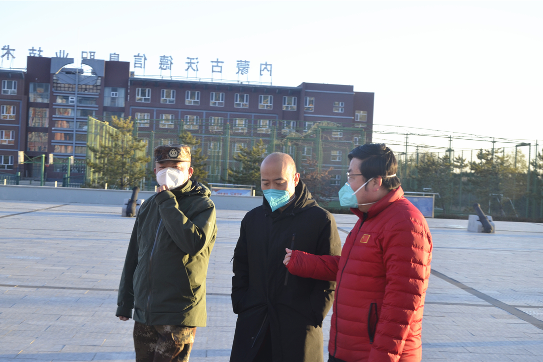 郭喜现场查看隔离点硬件设施、学生管理、三餐配送、物资保障等情况,并与内蒙古能源职业学院领导详细了解我校师生的工作生活情况,对内蒙古能源职业学院给予我校的大力支持表示感谢。