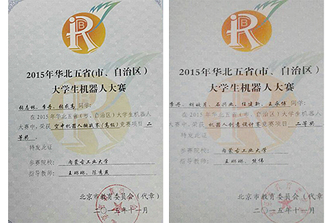 1114日,2015年华北五省大学生机器人大赛在北京大学生体育馆开赛。由我校信息学院教师指导参赛的学生参加了比赛,经过队员们的团结协作、顽强拼搏,最终获得了一等奖1项、二等奖2项。