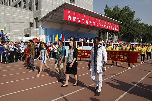 5月19日上午,内蒙古工业大学2016年田径运动会在新城校区体育场开幕。校领导金瑞、邢永明、刘志雄、刘进荣、姚德、黄龙海、峻峰出席开幕式并观看部分比赛,校长、校体育运动委员会主任邢永明教授致开幕词。校体育运动委员成员在主席台就坐。