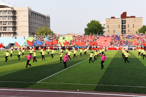 闭幕式上,女教职工们利用工作之余精心排练的团体操向师生展示了快乐运动、健康生活的良好精神状态。