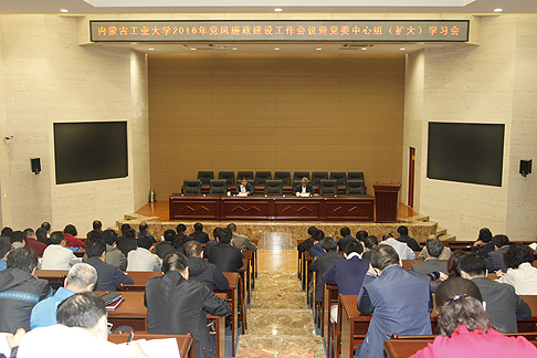 5月24日下午,我校2016年党风廉政建设工作会议暨党委中心组(扩大)学习会在新城校区教研楼二号报告厅召开。会议传达学习十八届中央纪委六次全会精神,贯彻落实党中央、国务院、自治区党委政府和教育部党组关于党风廉政建设的各项决策部署。校党委书记金瑞主持会议并讲话,校党委副书记、纪委书记刘志雄作工作报告,总结我校2015年党风廉政建设和反腐败工作,安排部署2016年工作任务。副校长刘进荣、姚德、黄龙海、栗文义,全体副处级以上领导干部参加会议。