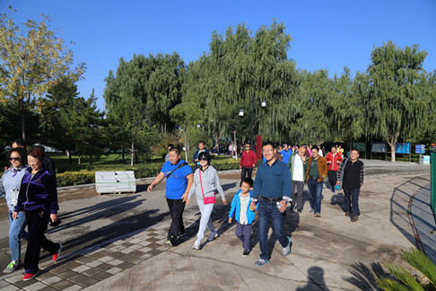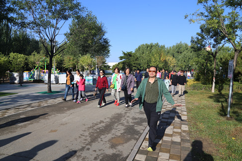 中秋节刚刚过去,国庆即将来临,忙碌了一周的老师们精神抖擞、伴着晨晖,陆续来到节日氛围渐浓的阿尔泰公园门前。各单位集结合影后,浩浩荡荡的队伍有序进入公园,开始长达7公里的“征程”。平日讲台上庄重严谨的老师们换下职业装,穿上鲜艳的运动装,让清晨的阿尔泰公园霎时间充满活力。衣着色彩丰富的运动队伍与鲜花草地相映成趣,成为阿尔泰公园一道亮丽的风景,不时引得晨练的人们驻足拍照。整个活动持续约3小时,参加活动的教职工们在行进过程中呼吸着清新的空气,欣赏着怡人的景色,相熟的同事们还在一起聊聊家常,谈谈理想……一路欢歌笑语,让人轻松愉快。