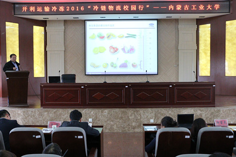 活动邀请了中国物流与采购联合会冷链委秘书长秦玉鸣、开利运输冷冻中国业务发展总监文琛博士、呼和浩特市昕海铭悦运输有限公司总经理杨岭、内蒙古田牧实业(集团)股份有限公司副总裁云旭、蒙牛乳业冷链物流高级经理贾玉涛分别以“下一个风口:冷链物流”“食品安全与冷藏运输”“第三方冷链物流的运营模式”“冷链物流”“蒙牛冷链物流分享”为主题,从理论研究、企业运营等角度,介绍了冷链物流对自治区经济发展的重要性并为学生职业生涯规划提出了指导性的意见与建议。