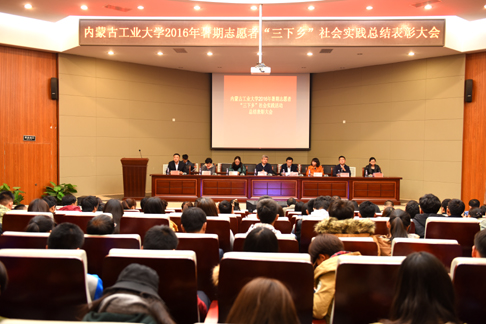会上,播放了视频短片《内蒙古工业大学2016年暑期“三下乡”社会实践活动纪实》,全面回顾了我校暑期“三下乡”社会实践活动历程;王武对我校2016年暑期“三下乡”社会实践活动进行了总结;峻峰宣读了《关于表彰2016年暑期志愿者“三下乡”社会实践活动先进集体、优秀个人的决定》,对化工学院等六个“优秀组织单位”,校直属队“红色足迹长征精神寻访宣传团等189支优秀分队,车广东等25名优秀指导教师,李婧等196名优秀队员,张石晶等40名优秀通讯员,李月新撰写的87篇优秀论文,人文学院明明等同学完成的《走近“十个全覆盖”,走近牧区新未来》等18个优秀调研项目进行了表彰奖励。化工学院团委书记任敏、土木工程学院给排13-3班李家杰同学分别作为优秀指导教师和优秀实践队员代表作了发言。