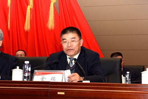 金瑞在开幕词中,对大会的召开表示热烈祝贺,向出席会议的各位代表及全校广大教职员工致以亲切的问候。他指出,八届三次教代会以来,学校领导班子团结带领广大师生员工,开拓进取,真抓实干,取得了可喜的成绩:党的基层组织活力不断显现,干部师生担当作为、遵规守纪、改革创新的意识显著增强;校内文化生活不断丰富,广大教职员工的职业素质不断提升,和谐校园建设持续推进;学校的核心竞争力、综合办学实力和社会影响力不断增强。这些成绩的取得,离不开学校全心全意依靠广大教职员工办学的指导思想,离不开教代会、工会桥梁纽带作用的充分发挥,更离不开广大教职员工为学校事业发展做出的坚持不懈的努力和奉献。
