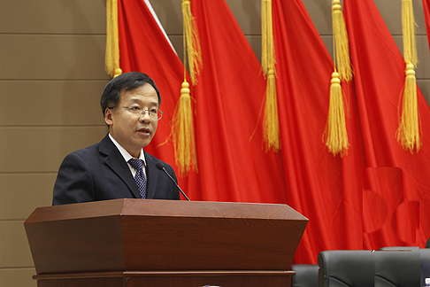 邢永明向大会作题为《坚定发展信心,努力争创一流——建设国内知名、民族地区一流的教学研究型大学》的年度工作报告。报告分为“‘十二五’时期发展回顾”和“‘十三五’时期发展思路”两个部分。