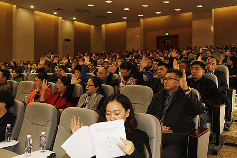 教研楼一号报告厅气氛热烈隆重。16个代表团的340余名正式代表、列席代表、特邀代表出席会议,肩负着两千余名教职工的重托,履行他们的神圣职责。大会在庄严的国歌声中开幕。