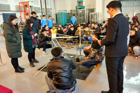 竞赛分为训练阶段、制作阶段及加载阶段。训练阶段,参加过区赛、国赛的队员对参赛队员在结构设计理念、手工及模型制作的技巧等方面进行了培训。模型制作后的加载环节,经过“模型尺寸测量”“赛前陈述”“模型加载”“挠度测量”以及“评委点评”等环节,对选手的赛场表现、结构选型、手工、刚度以及荷重比等方面进行评分。最终,白钰、侯博、赵彪获特等奖;高中阳、靳贵宇、郭福旺获一等奖;常金鹏、郭永杰荣获最佳手工奖;刘仕奇、贾小敏、王鑫获最佳创意奖。