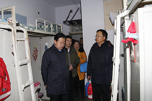 在邢永明陪同下,窦贵君深入我校思源餐厅、3号学生公寓对食品安全、学生生活区消防安全等工作进行了检查。